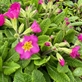 An early spring bloomer with flowers in shades of deep pink and contrasting yellow centres.