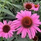 | An improved Echinacea Magnus, dark green foliage with pink-purple flowers around a burnt orange cone. Removing spent flowers will prolong blooming period. |